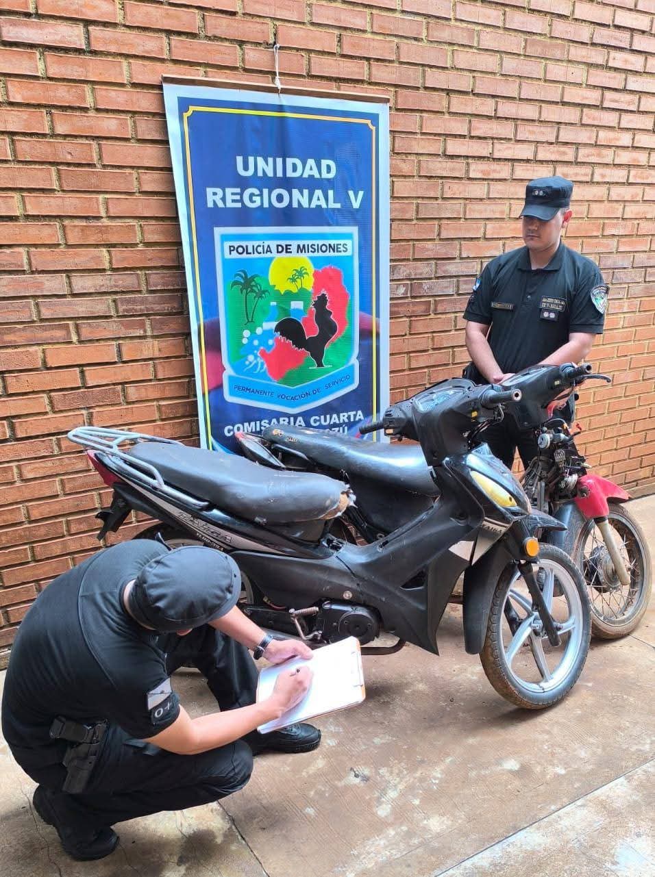 En un efectivo operativo realizado en la tarde de ayer tarde, personal de la Comisaría Seccional 4ta (UR-V) logró recuperar dos motocicletas en una zona de malezas del barrio Cataratas. El procedimiento permitió esclarecer un robo denunciado el pasado sábado por un hombre de 44 años, quien relató que un amigo, a quien le había prestado su rodado, sufrió el robo de la unidad en la zona de la rotonda del barrio Las Leñas.