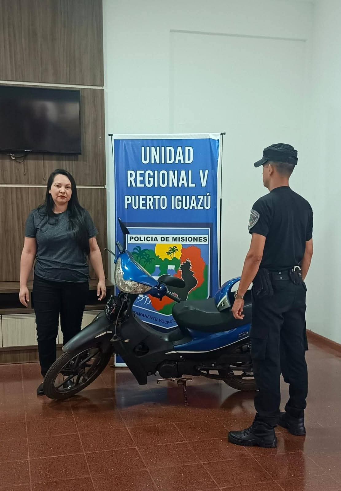 Tras completar las diligencias de rigor y por disposición de la Justicia, la motocicleta fue restituida hace instantes a su legítima propietaria, quien había radicado la denuncia y recibió el vehículo con gran alivio.