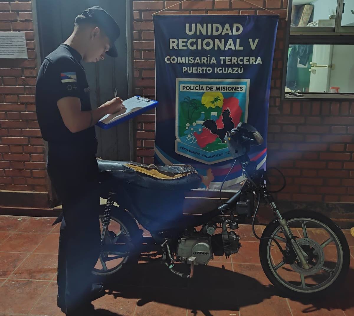 Ante esta situación, los policías verificaron los datos del vehículo en el sistema institucional y constataron que la moto había sido denunciada como sustraída el pasado 10 de julio, en jurisdicción de la comisaría seccional 1.ª de la misma Unidad Regional.