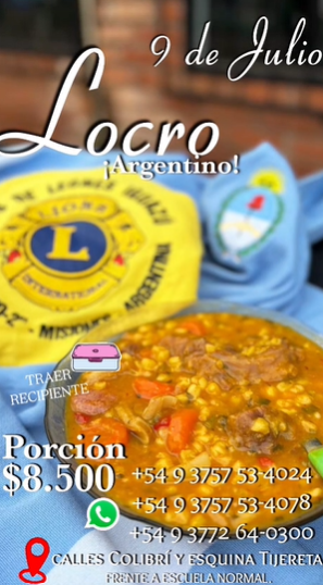 Con motivo del día de la independencia, el Club de Leones te invita a disfrutar de un tradicional locro argentino, que estará disponible este miercoles 9 de julio.