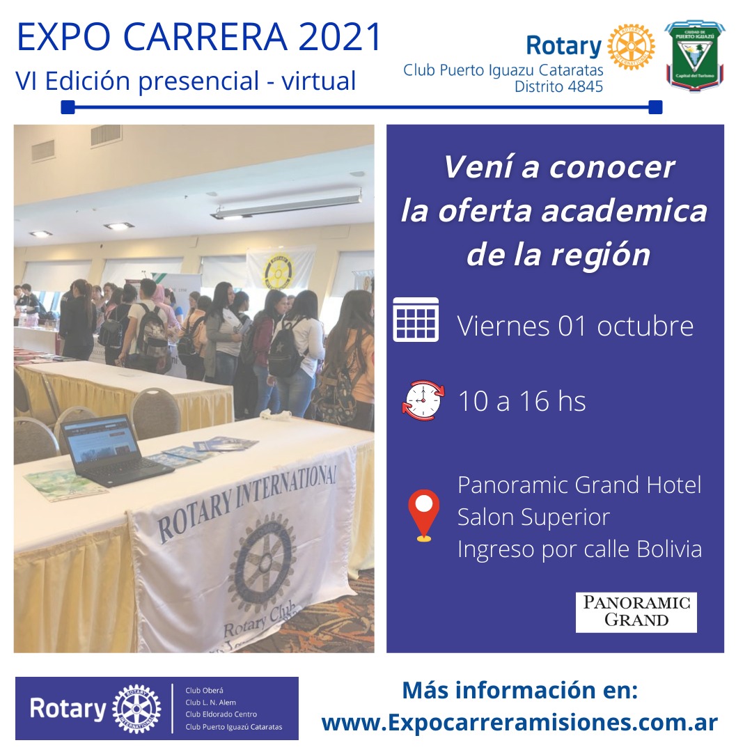 El Rotary Club Puerto Iguazú Cataratas y la Municipalidad de Puerto Iguazú, invitan a la 6ta. edición de la Expo Carreras, que se realizará: