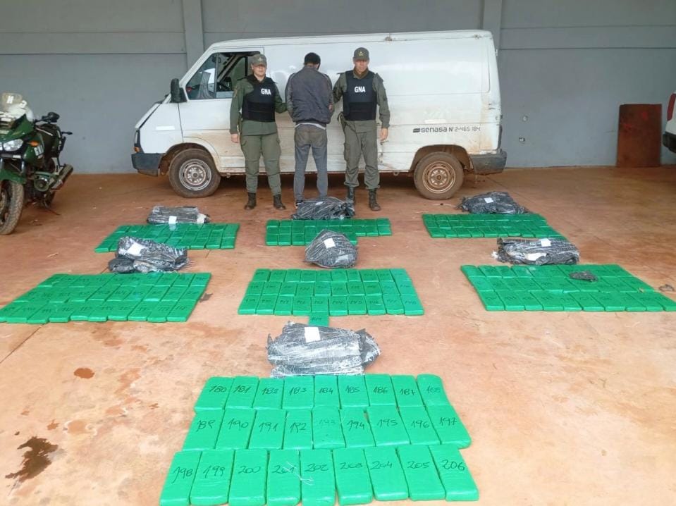 Los funcionarios constataron que el hombre, oriundo de Misiones, llevaba 206 paquetes con la droga.