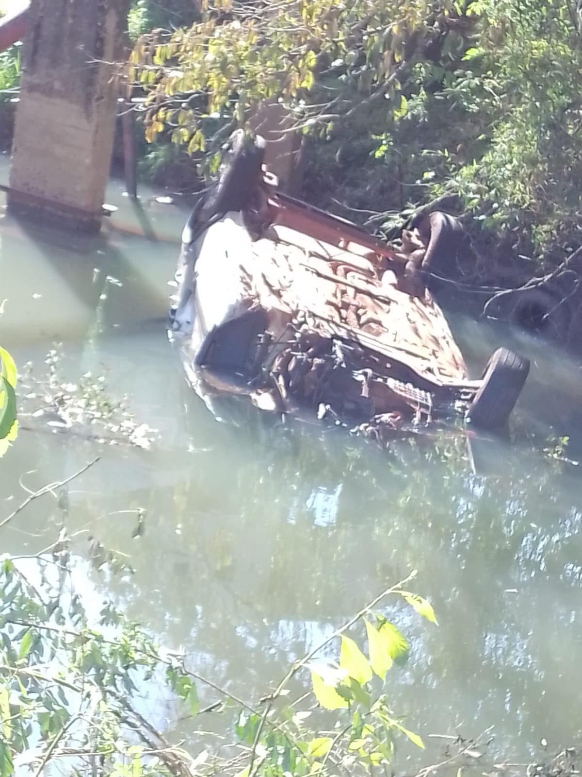 Rápidamente personal policial desciende a la parte inferior del puente, constatando que efectivamente hallabase volcado sobre aguas del arroyo Caraguatay el vehículo, marca FORD ECO SPORT dominio KDY-363 hundido, con dos cuerpos. Una famenina mayor y un masculino menor sin vidas en su interior.