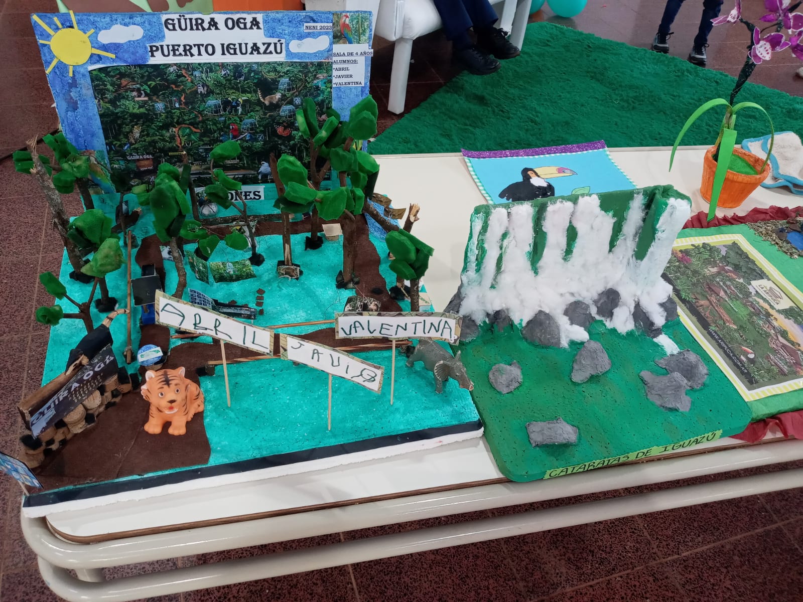 Para la Expo los niños realizaron diferentes maquetas de los atractivos turísticos que se encuentran en nuestra localidad de Puerto Iguazú, como ser las Cataratas, el Hito de las Tres Fronteras, la Aripuca, Guira Oga, Casa de la Botella entre otros.