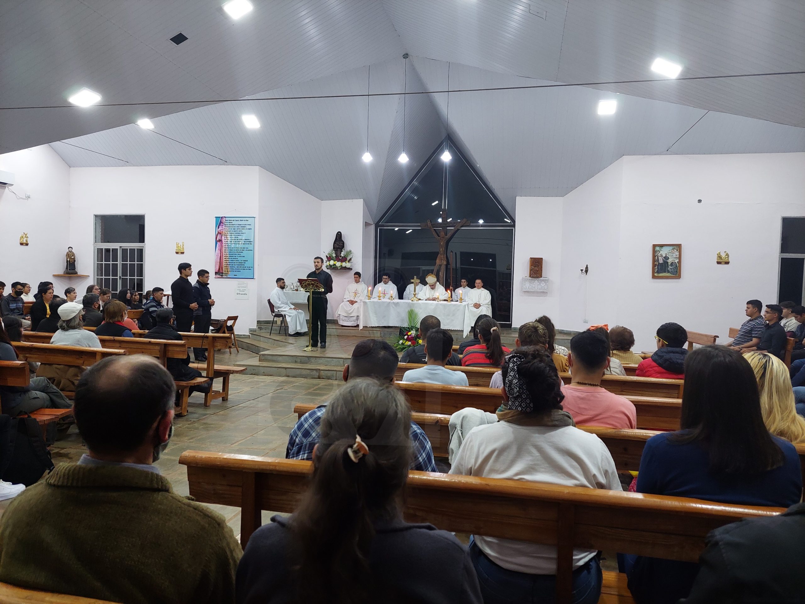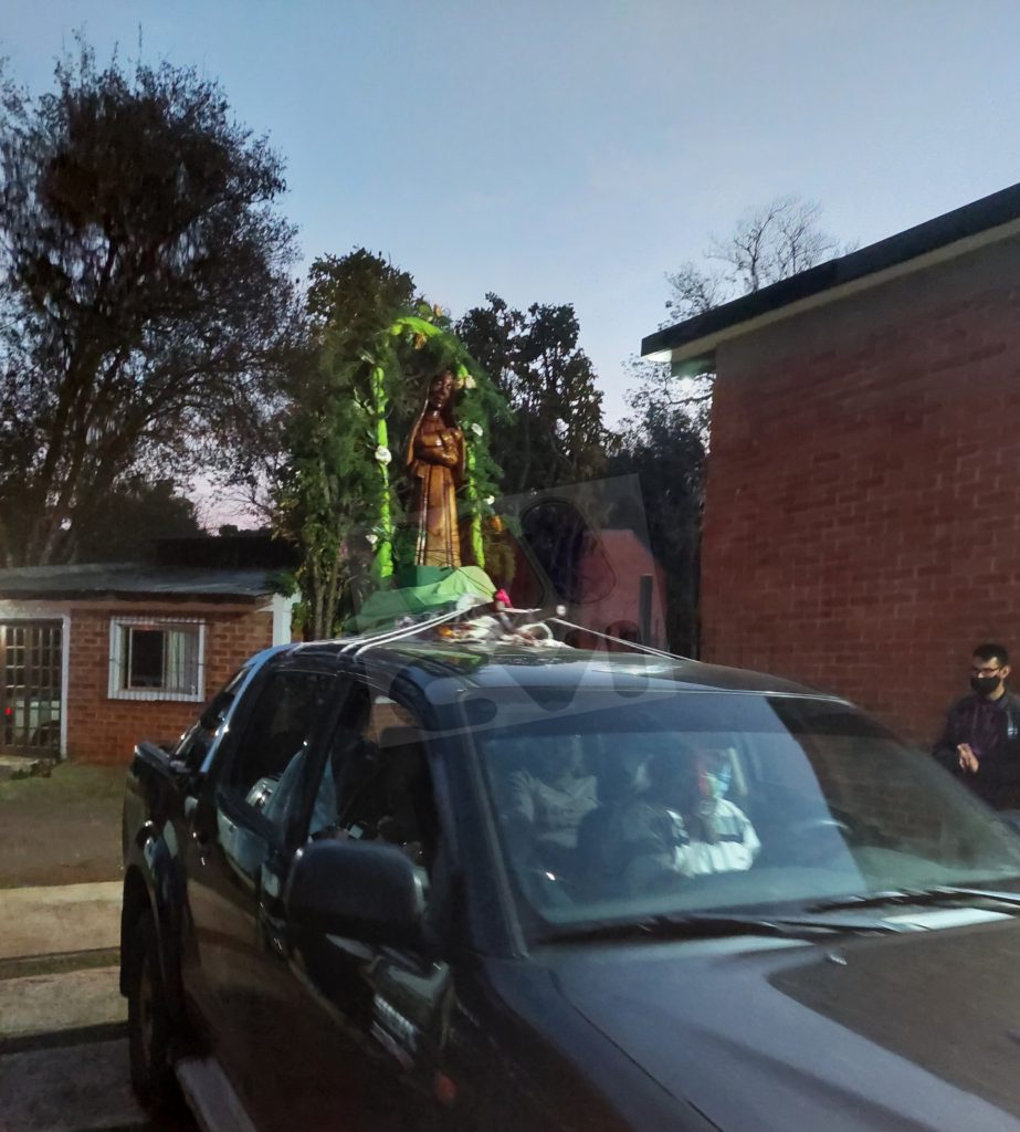 En el Santuario, la imagen peregrina, fue recibida por el Obispo Nicolás Baisi, jóvenes de la comunidad de San Isidro Labrador, feligreses de distintas parroquias de Iguazú, sacerdotes, religiosas, seminaristas y el grupo de Cáritas Diocesana.