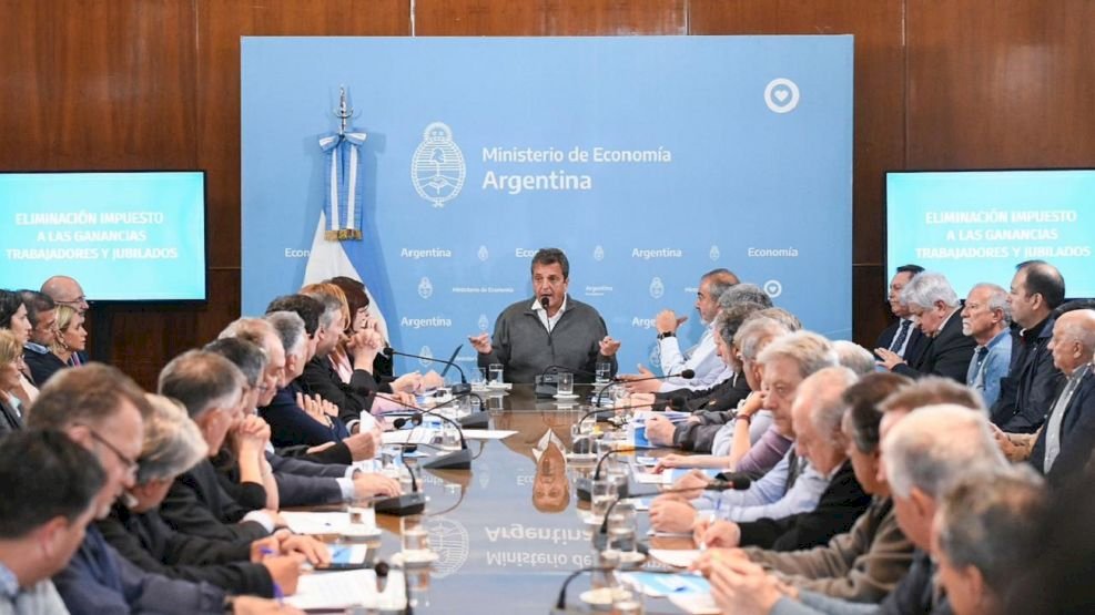 En un multitudinario acto que se realizó frente al Ministerio de Economía, Sergio Massa y su equipo anunciaron los cambios que sufrirá el Impuesto a las Ganancias. “Nosotros en el 2019 empezamos a recorrer un camino de disminución y llegamos a este momento en el que menos de 800.000 trabajadores argentinos están pagando Ganancias”, expresó en compañía de diferentes dirigentes del oficialismo y la CGT.