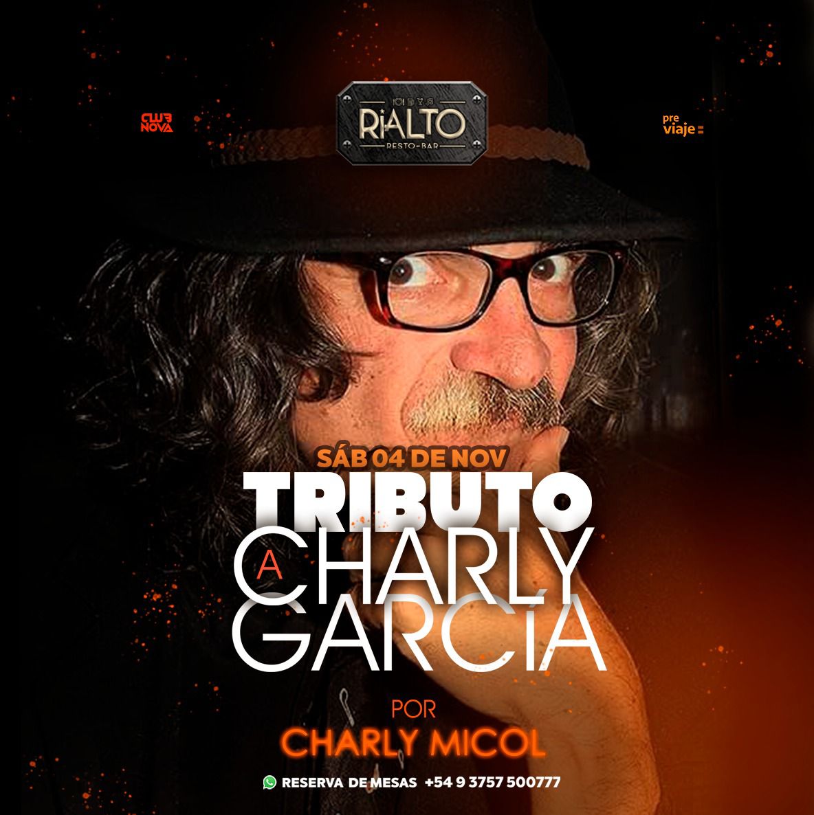Este sábado 04 de Noviembre te esperamos en RIALTO RESTÓ BAR con un show tributo al inmenso Charly García por Charly Mícol!