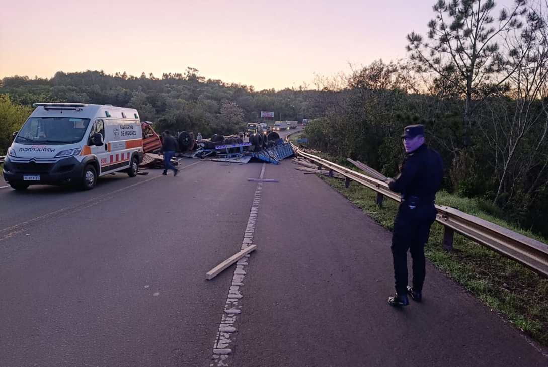 Según informó la Policía de Misiones, el conductor del camión Scania 112 se llama Orlando Javier D.S (31), quien “perdió el control y terminó sobre la cinta asfáltica” a las 6:30.