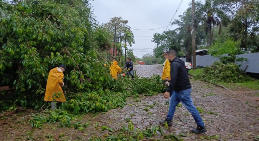 Cuadrillas municipales se encuentran desplegadas desde esta mañana en varios puntos de la ciudad, realizando tareas de remoción de árboles caídos, limpieza de calles, desobstrucción de desagües y retiro de escombros generados por los destrozos.