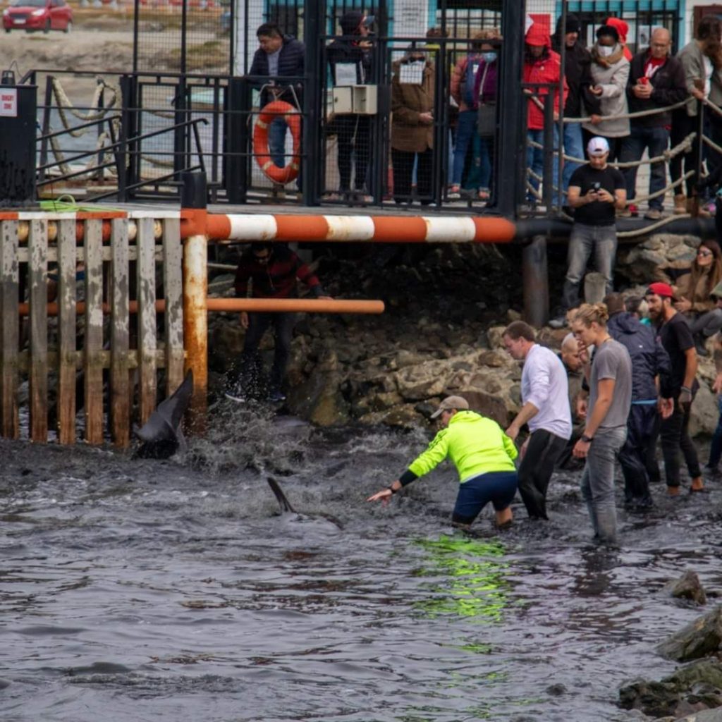 Los cetáceos, también conocidos como toninas, fueron registrados por turistas y locales, quienes quedaron impactados, ya que estos aleteaban de forma desesperada en las costas de Ushuaia