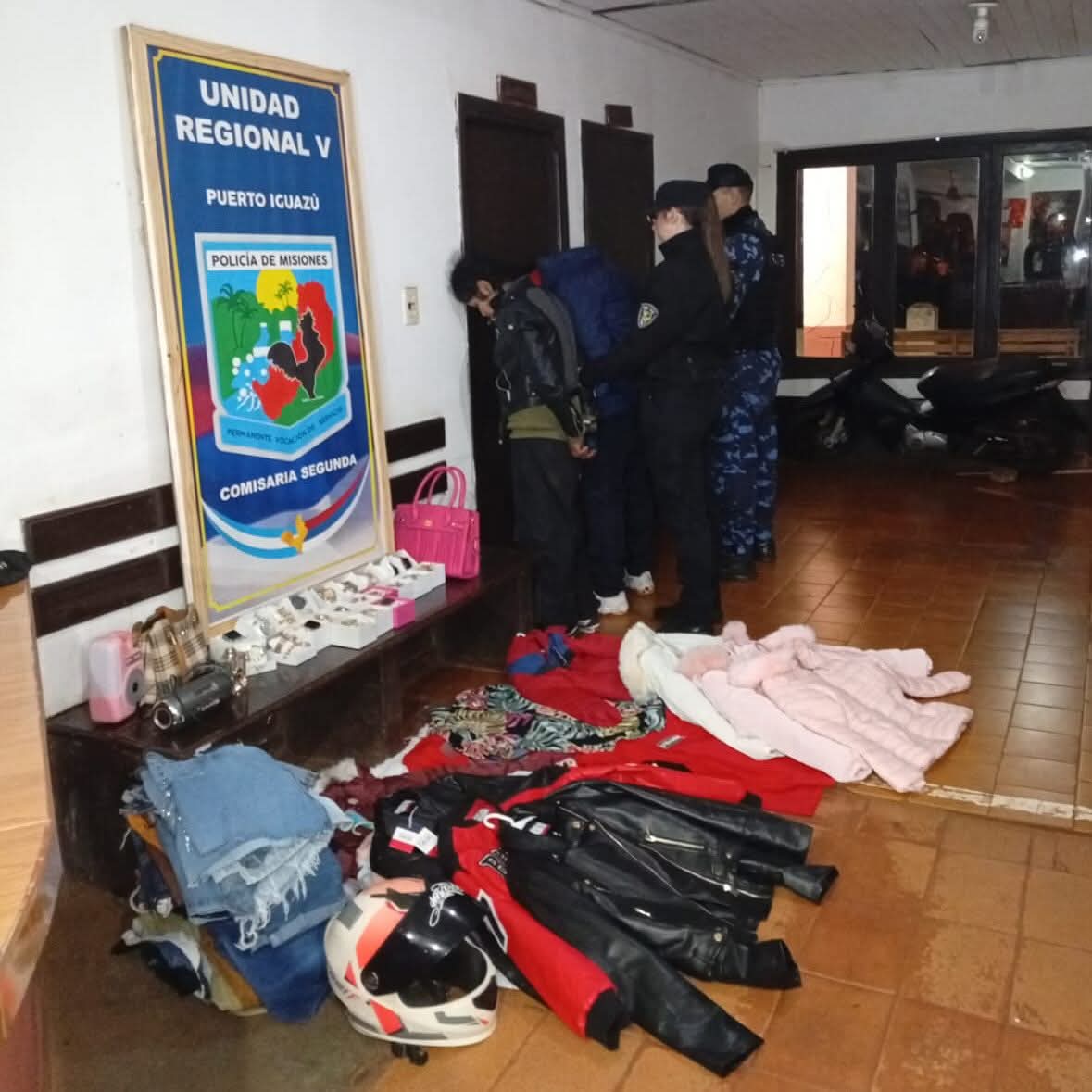 Agentes de la Unidad Regional V detuvieron esta madrugada a una pareja integrada por un joven de 20 años y una mujer de 33, quienes fueron sorprendidos transportando bultos con prendas de vestir nuevas, presuntamente sustraídas de un comercio local.
