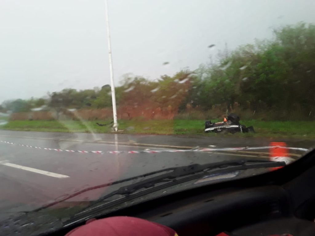 El vehículo en el que viajaban dos efectivos, un oficial y un suboficial, circulaba en sentido Santa Ana-Posadas cuando por causas que son materia de investigación el conductor perdió el control del rodado y terminó volcando en la banquina.