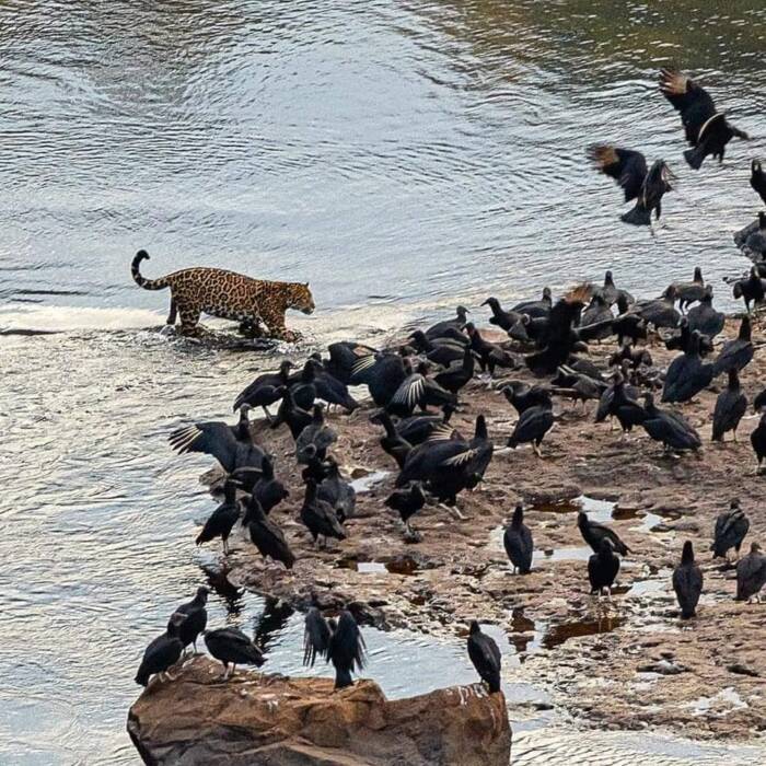 Cecília Miura, fotógrafa que se encontraba en el Parque Nacional Do Iguaçu, Brasil, y fue quién pudo divisar al felino en la costa del lado argentino, entre los saltos de las Cataratas del Iguazú y tomó rápidamente las fotografías.