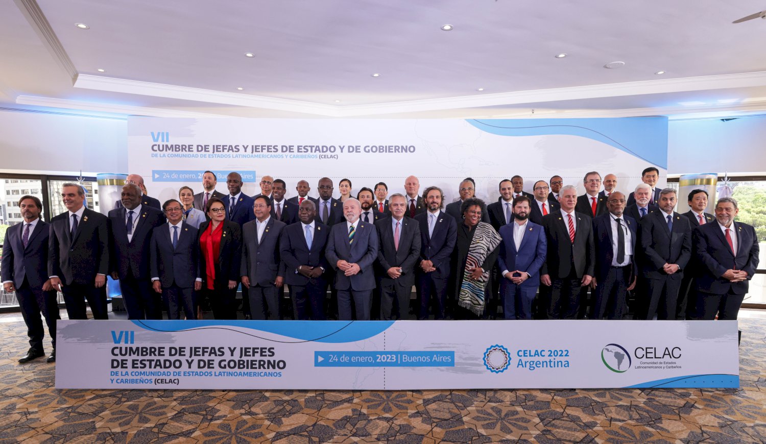 Las Jefas y los Jefes de Estado y de Gobierno de la Comunidad de Estados Latinoamericanos y Caribeños (CELAC), reunidos en la Ciudad de Buenos Aires el 24 de enero de 2023, convencidos de la importancia que tiene este mecanismo intergubernamental de integración regional, de concertación, unidad y diálogo político para promover y proyectar a América Latina y el Caribe en el debate de los temas de la agenda global: