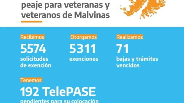 Mediante la resolución 430/2022, desde el 8 de abril de 2022 Vialidad Nacional dispuso que los veteranos y las veteranas de la Guerra de Malvinas quedaran exentos del pago de la tarifa de peaje en las estaciones pertenecientes a la Red Vial Nacional Concesionada.